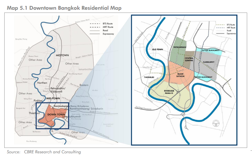 1. ダウンタウン(図に示してある中心部エリア)については、今後、更に取引が活発になり、また、供給が少なく、土地の値段も下がってないので、新規プロジェクト、既存物件とも値上りが続く。