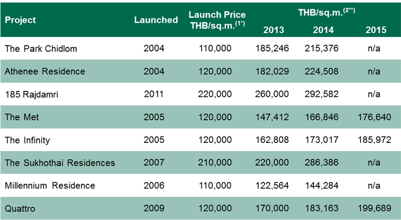 prices of THB220,000 per sqm, and in 2014 CBRE handled one sale for THB292,582.